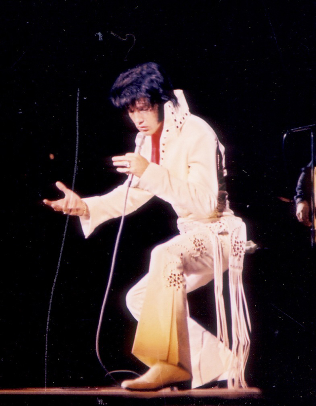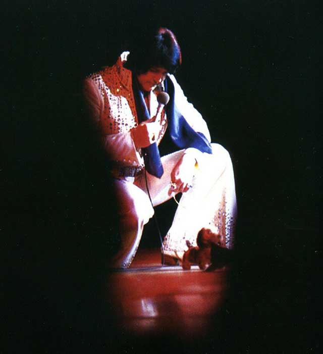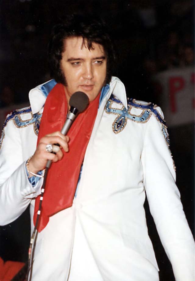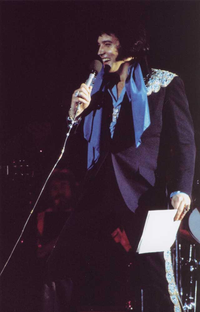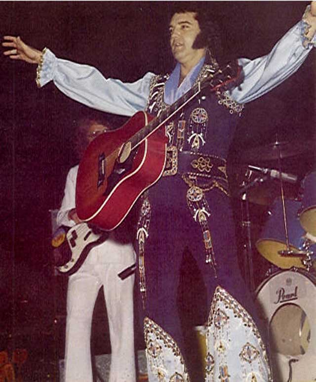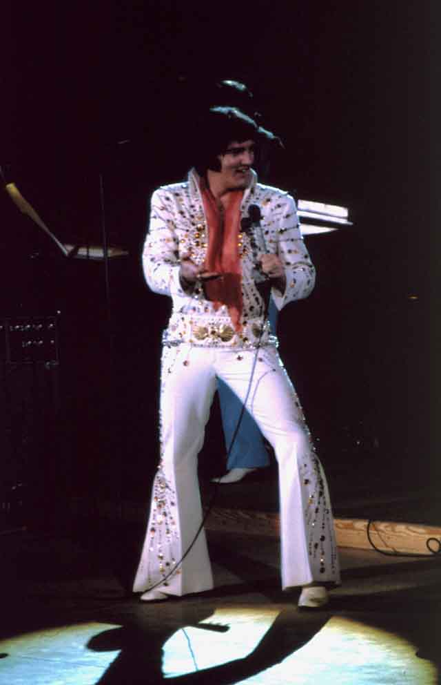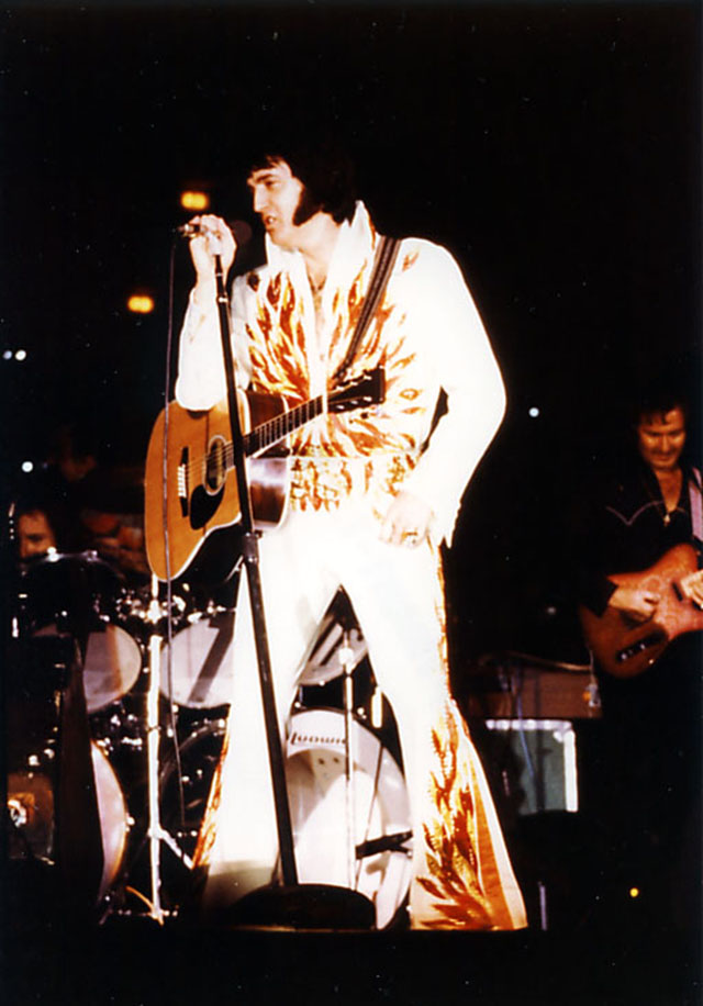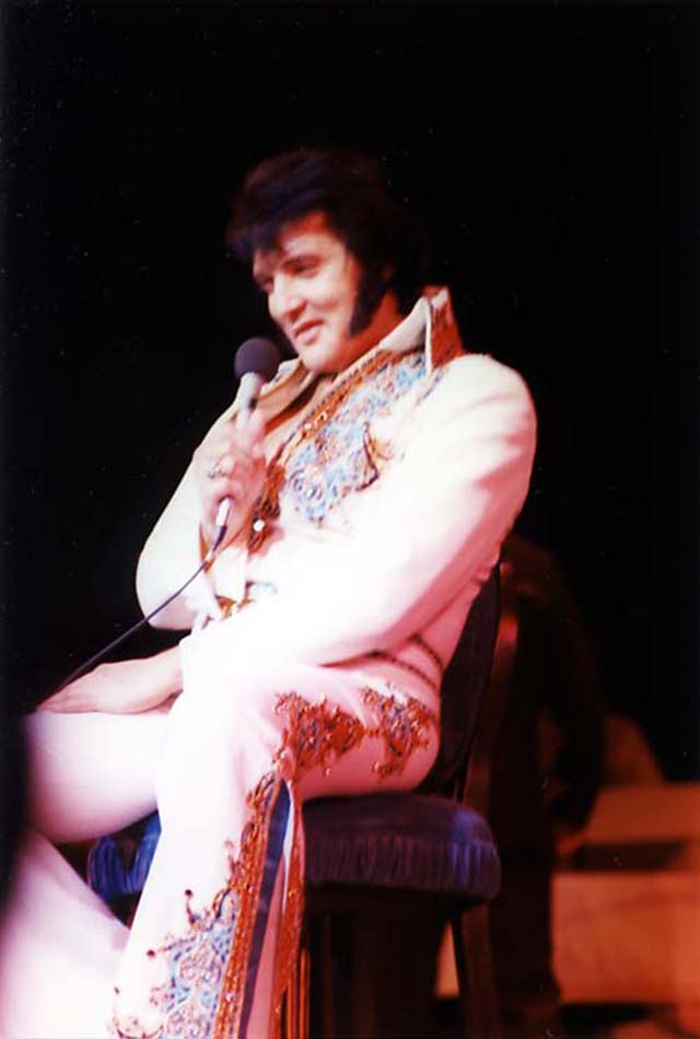Elvis wore this suit very rarely. It was worn a few times during the previous Vegas engagement (1975 March/April), but only once on tour. It also appears that Elvis actually wore the whole suit(!) as casual wear during his 1975 July tour.