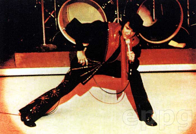 One of the (at least) four similar leather suits Elvis wore during his 1974 August/September Las Vegas engagement. Apparently, these type of outfits were very popular among performers at that time, so that may be one of the reasons why also Elvis decided to try out this type of suits.